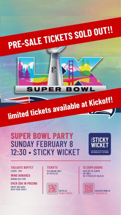 February 19, 2026100+ Men Who Care Victoria $100.00 100+ Men Who Care Victoria quantity Add to cart August 01, 2025Local Legends $60.00 Local Legends quantity Add to cart February 08, 2026Vancouver Island’s Biggest Super Bowl Party $37.00 Your Cart Your cart is empty – time to book some tickets! Total: $0.00