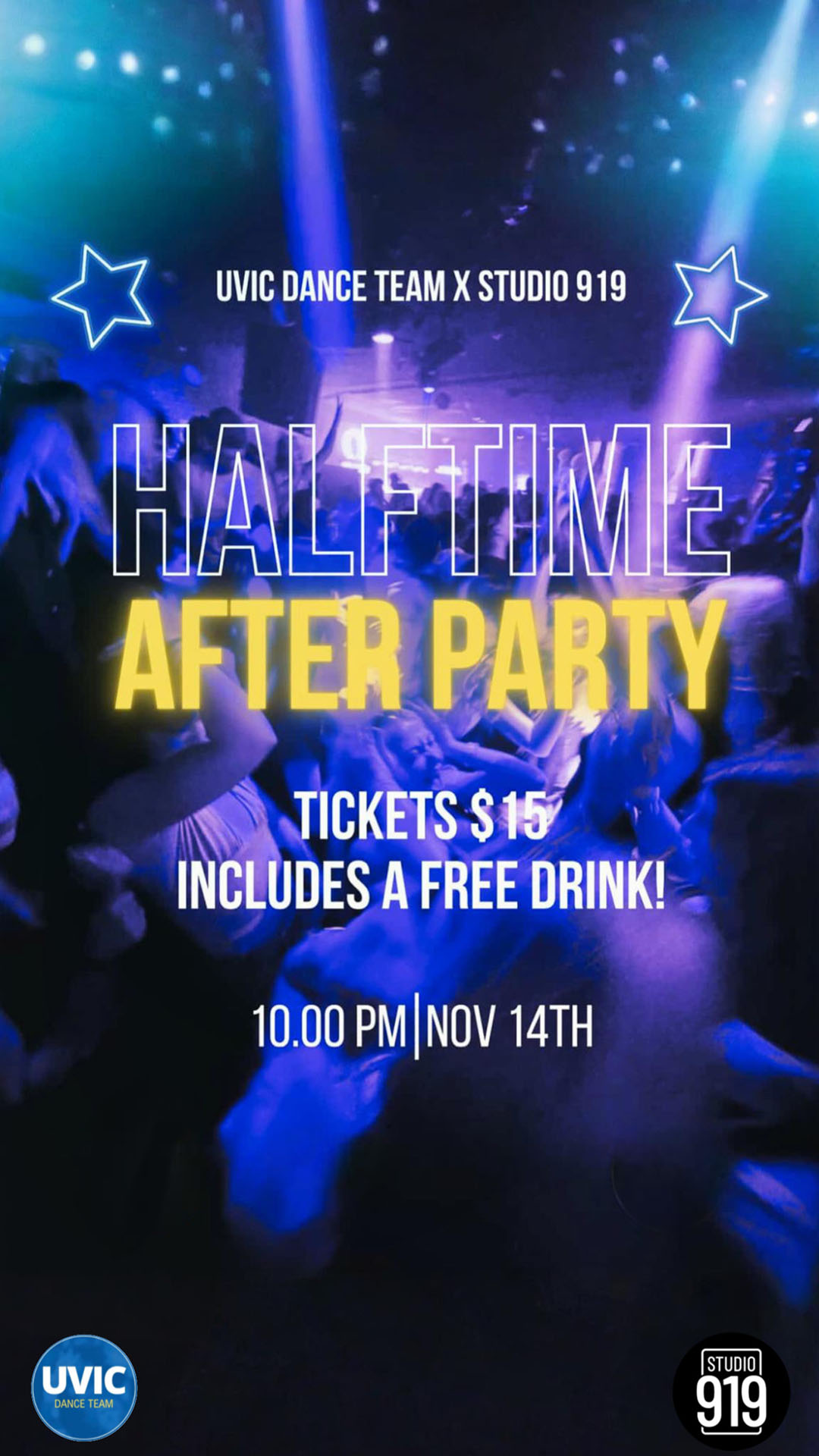 Get ready for an awesome, music filled night full of dancing and celebrating the sports community at UVIC. Join the UVDC at Studio 919 November 14th to keep the UVIC hype going after the Basketball Game, where the dancers will be performing a Beyonce inspired halftime performance.